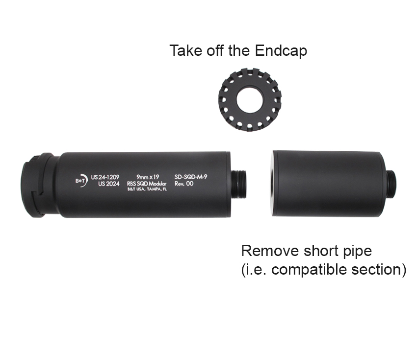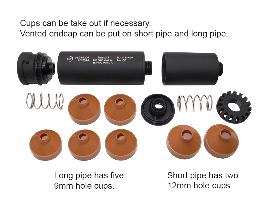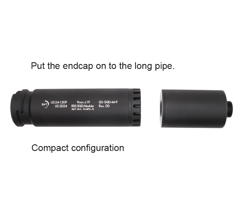This Super Quick Disconnect Modulation (SQD-M) attachment is a one-hand 3-lug mounting system for MP5 (Marui Next Gen) AEG only. It is made by precision CNC machines and has matt black hardcoat-anodized finishing. This dummy SQD-M is in one size with a Modular section that can be added or removed upon user needs. Some cups are inside the SQD, but they cannot reduce the noise from recoil/blow-back.