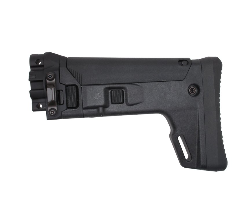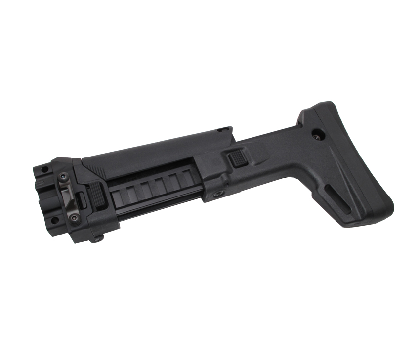 This polymer ACR stock has aluminium stock adaptor which is made by precision CNC machines with hardcoat-anodized finishing. It fits MP5K (VFC) GBB only, it does not fit MP5 or MP5SD.