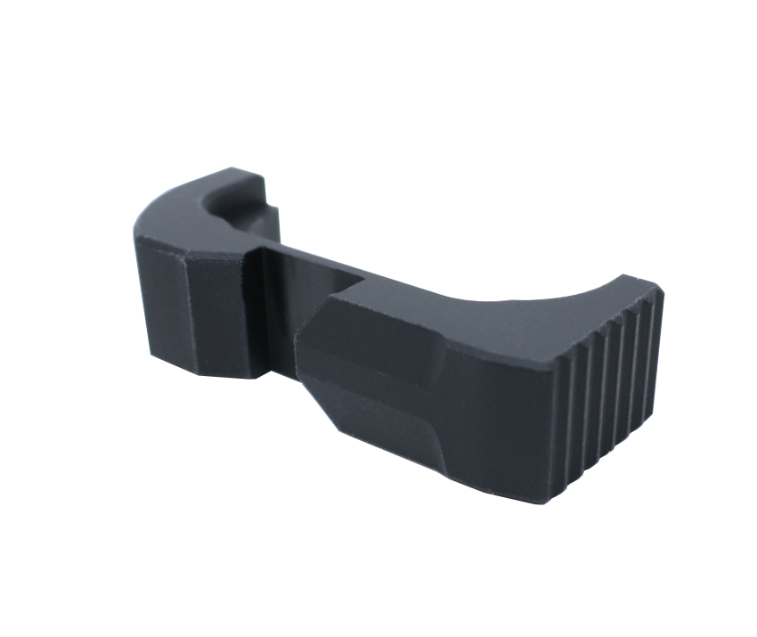 This CNC 6061 aluminium magazine catch is made by precision CNC machines and has matt black hardcoat-anodized finishing. It fits Marui Glock 17 Gen 4 & 5 and Glock 19 Gen 4 & 5. This is a both-sides reversible magazine catch with A style Right-handed shooters' marking.