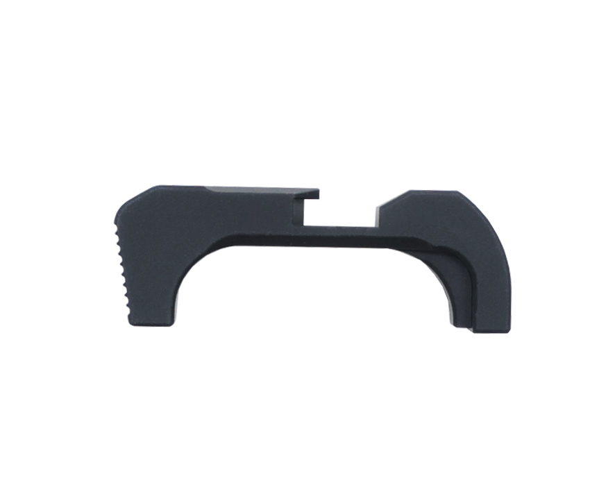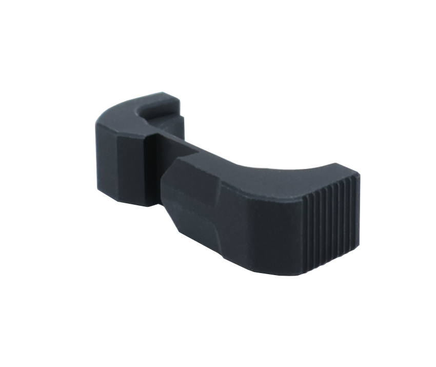 This CNC 6061 aluminium magazine catch is made by precision CNC machines and has matt black hardcoat-anodized finishing. It fits Marui Glock 17 Gen 4 & 5 and Glock 19 Gen 4 & 5. This is a both-sides reversible magazine catch with A style Extension Left-handed shooters' marking.
