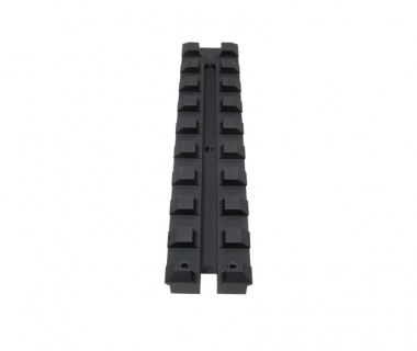 This rear sight rail is made by precision CNC machines. It fits AKM (T.Marui GBB). The rail is constructed from 6063 aluminium with mil-spec top rail, it has matt black hardcoat-anodized finishing. The transverse screw adjusts the side-way setting of the rail. The 3 vertical screws (forwards & backwards) set the horizontal platform of the rail.