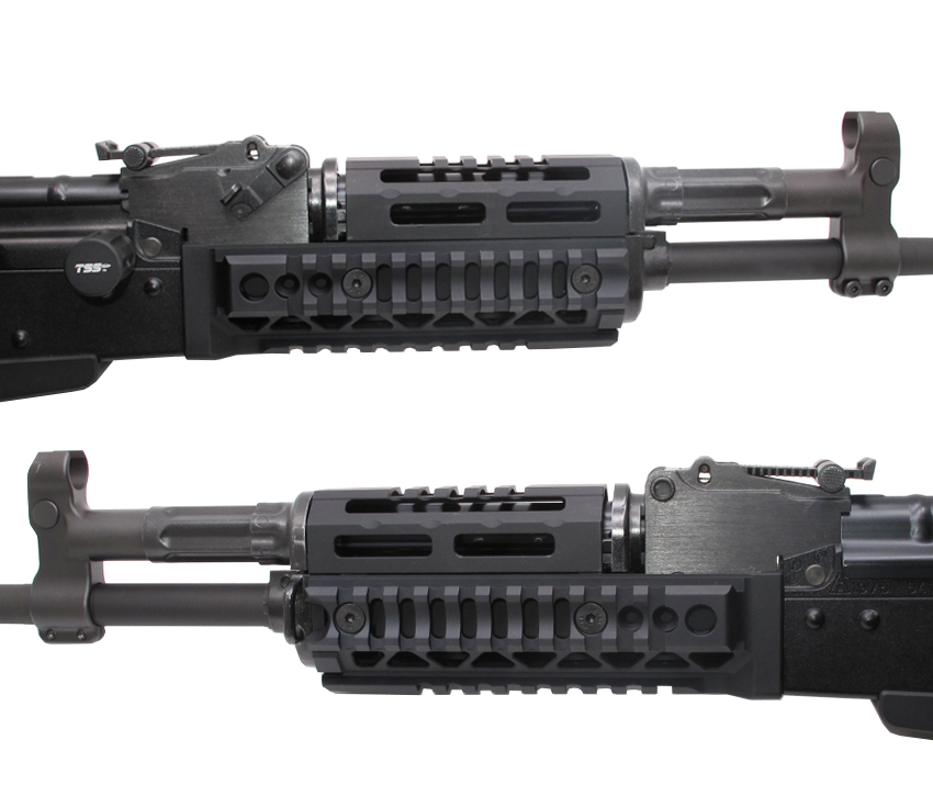 This aluminium Picatinny Rail handguard is made by precision CNC machines and has matt black hardcoat-anodized finishing. It fits AKM(T.Marui GBB) only. This handguard must be installed above our AKM aluminium gas tube (i.e. item No.2345), and the Cleaning Rod, that is under the barrel, must be removed from the barrel. It has 5-slot Picatinny Rail on top, and Picatinny Rail on other sizes.
