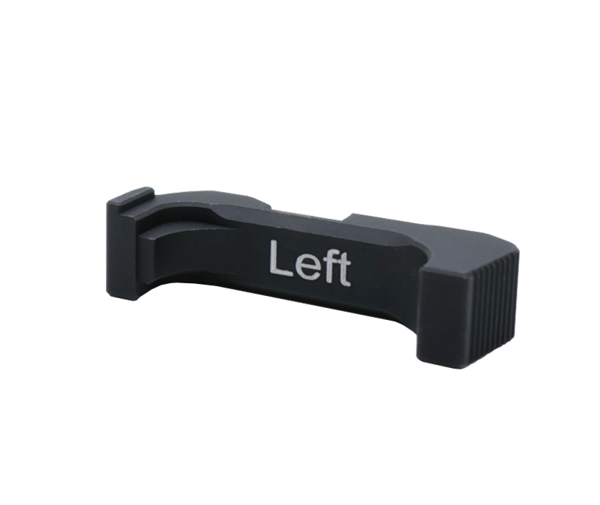 This CNC 6061 aluminium magazine catch is made by precision CNC machines and has matt black hardcoat-anodized finishing. It fits Marui Glock 17 Gen 4 & 5 and Glock 19 Gen 4 & 5. This is a both-sides reversible magazine catch with A style Extension Left-handed shooters' marking.