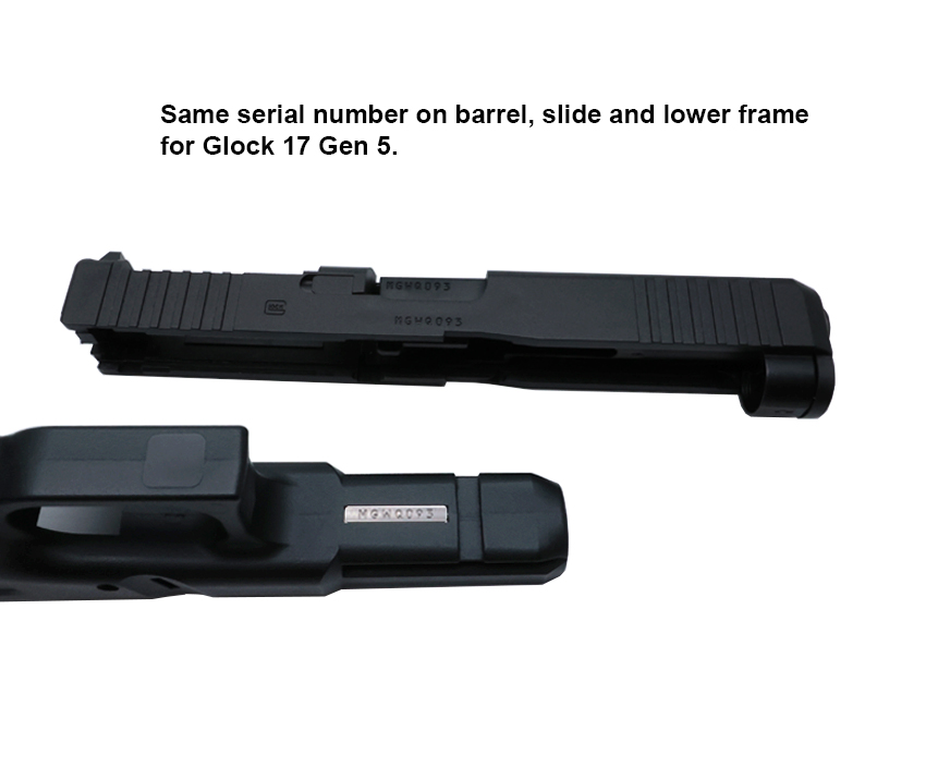 This CNC stainless steel serial number plate is made by precision CNC machines. It fits Glock 17 Gen5 (T.Marui) GBB with Glock 17 Gen5 slide, because the serial number plate has same serial number of Glock 17 Gen5 slide.